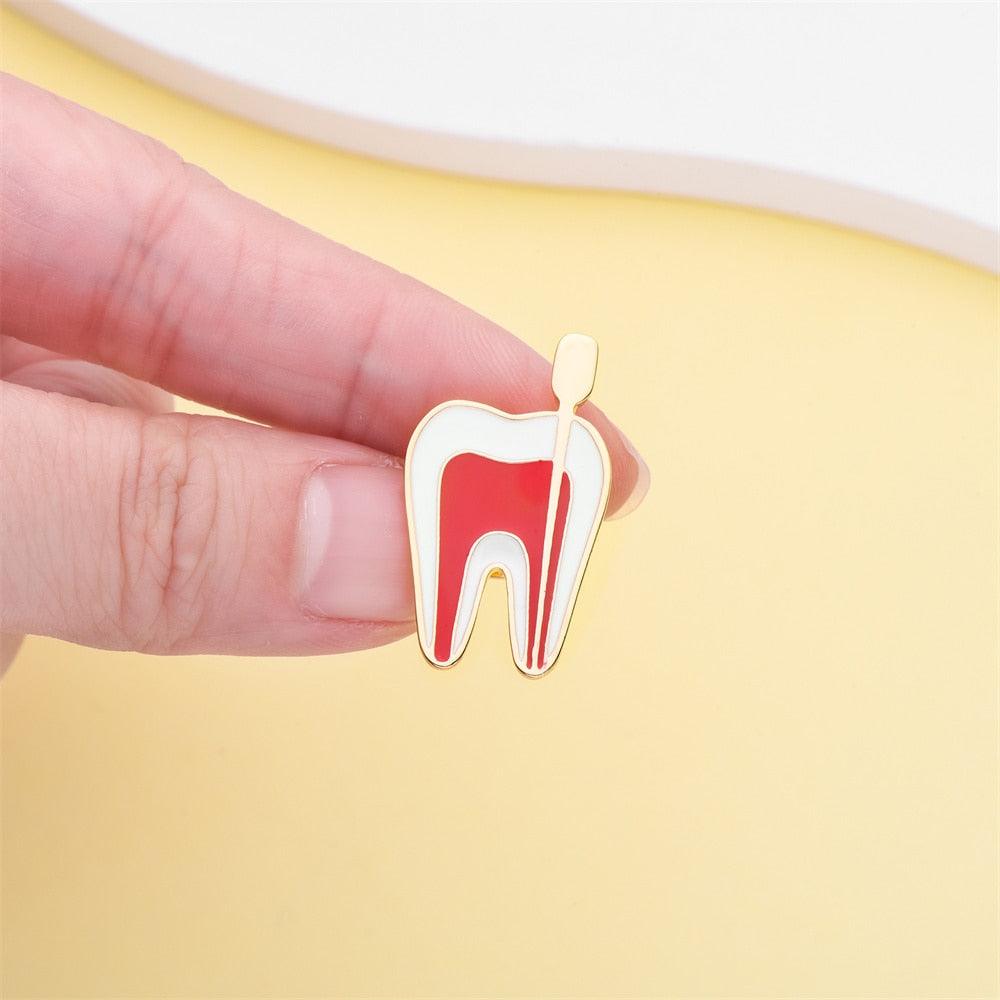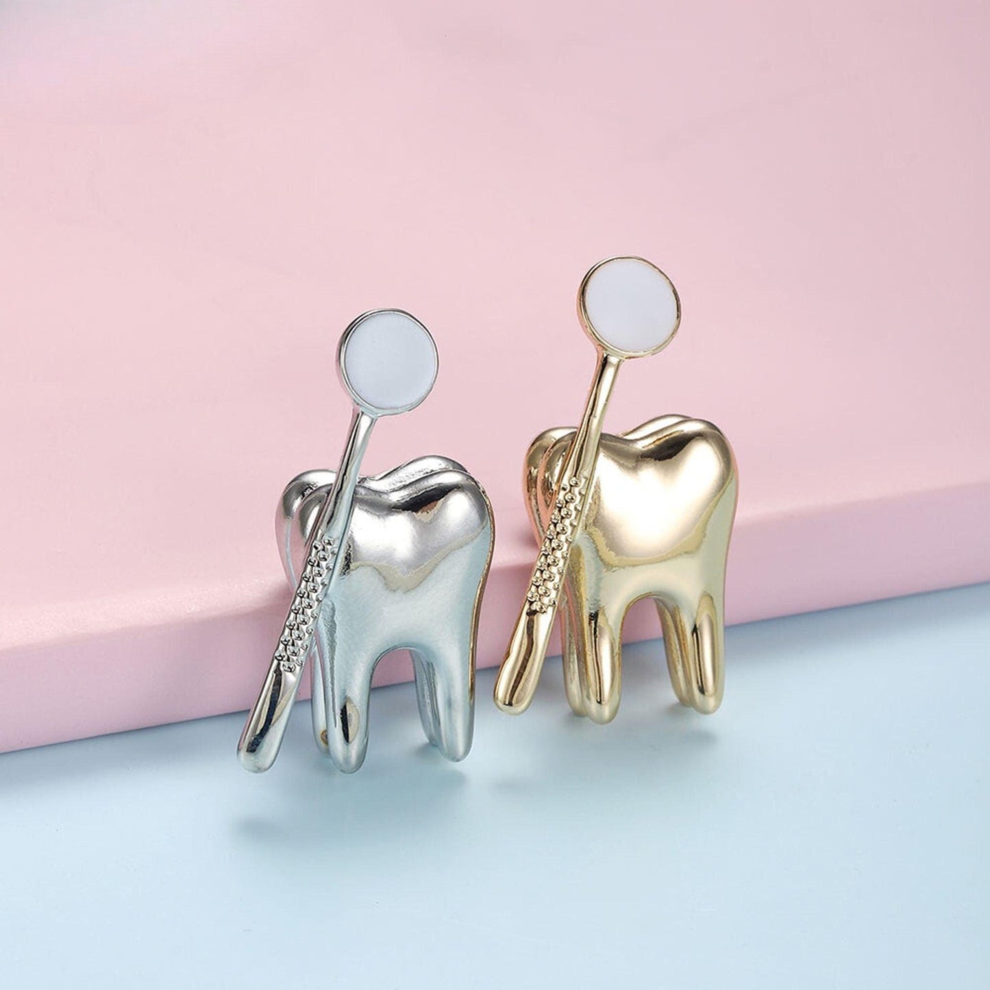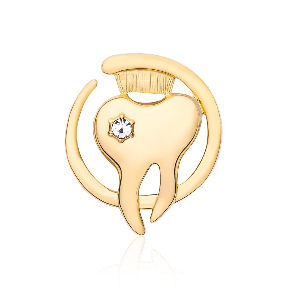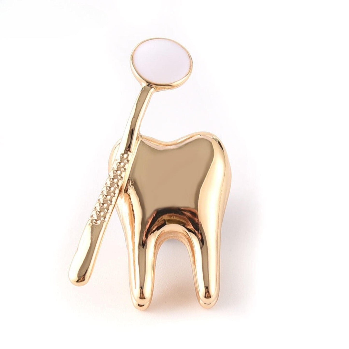 Broche en émail pour dentiste, broche médicale mignonne en forme de dent, alliage de zinc, couleur or, badge en émail pour dentiste et infirmière, cadeau pour femme