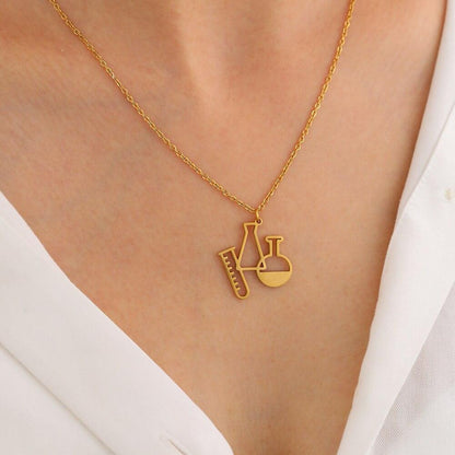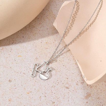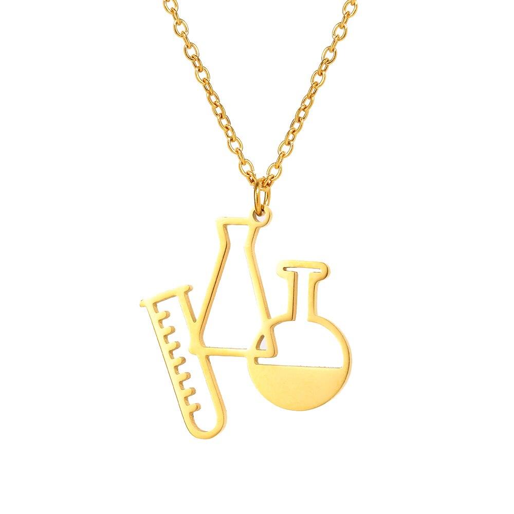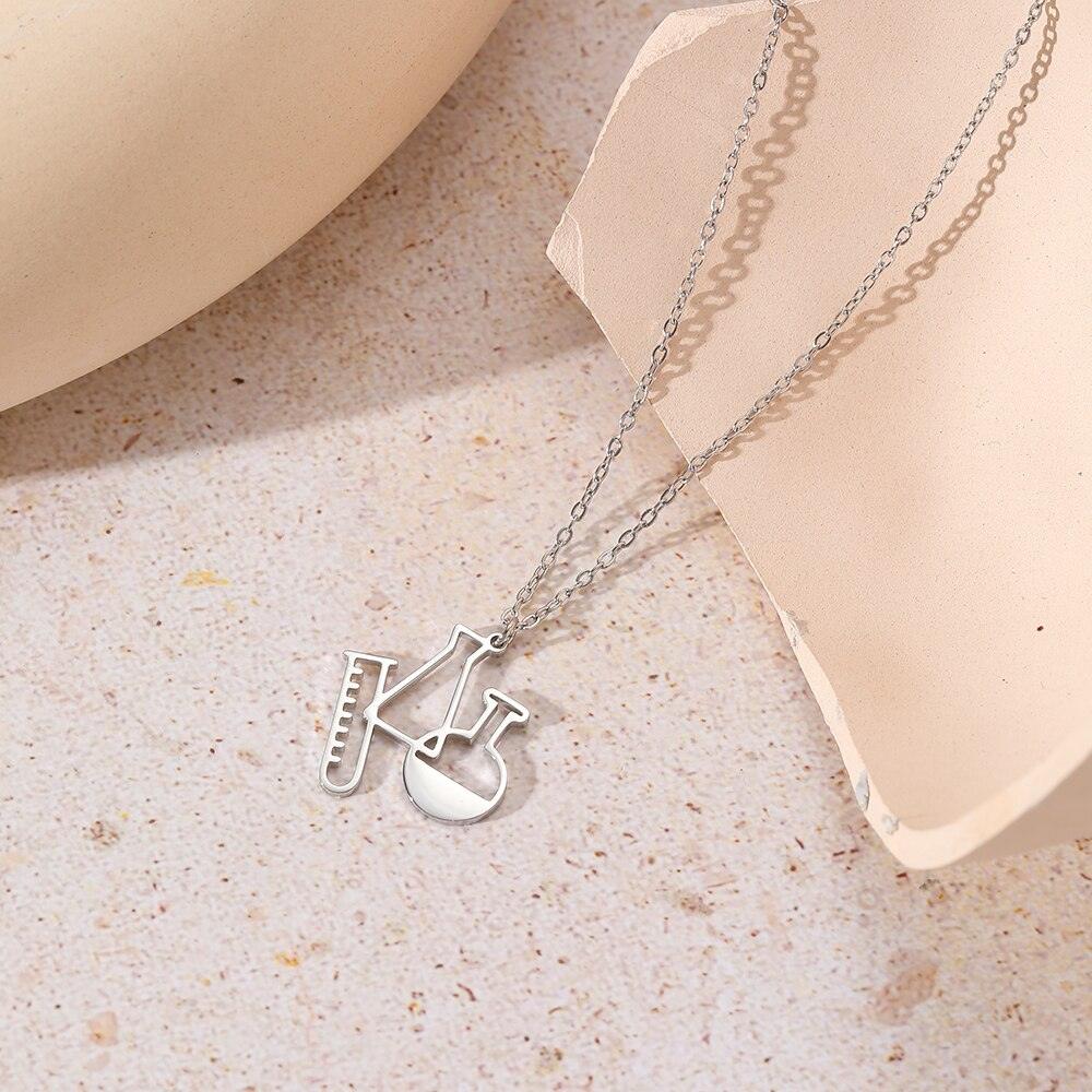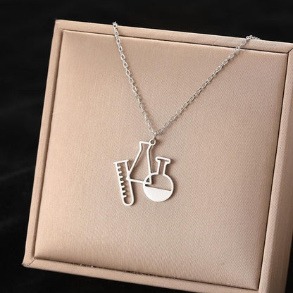 Laboratorium Tech Roestvrijstalen Kettingen Nieuw Ontwerp Chemische Containers Creatieve Hanger Kraagketting Ongebruikelijke Ketting Voor Vrouwen Sieraden Geschenken