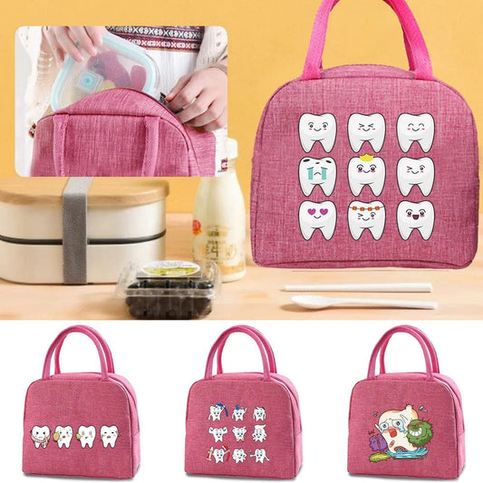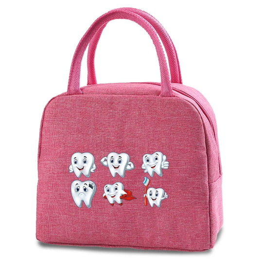 Sac à lunch isotherme rose à imprimés de dents multiples pour dentiste
