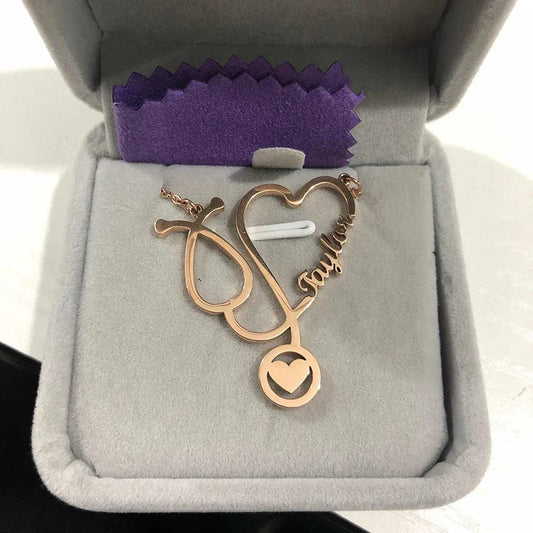 Collier personnalisé avec nom de stéthoscope pour médecin et infirmière, chaîne en acier inoxydable, ras du cou pour femmes, cadeau, bijoux