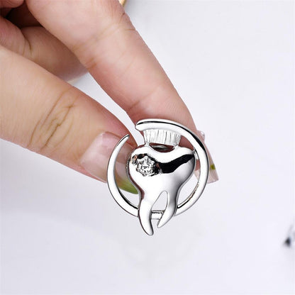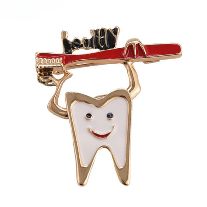 Broche en émail pour dentiste, broche médicale mignonne en forme de dent, alliage de zinc, couleur or, badge en émail pour dentiste et infirmière, cadeau pour femme