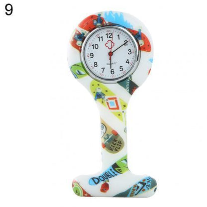 Montre d'infirmière à motif multicolore, chiffres arabes, cadran rond, pour femmes, montres de poche