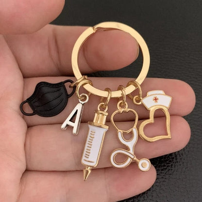 Porte-clés unisexe noir personnalisé avec lettre infirmière et médecin