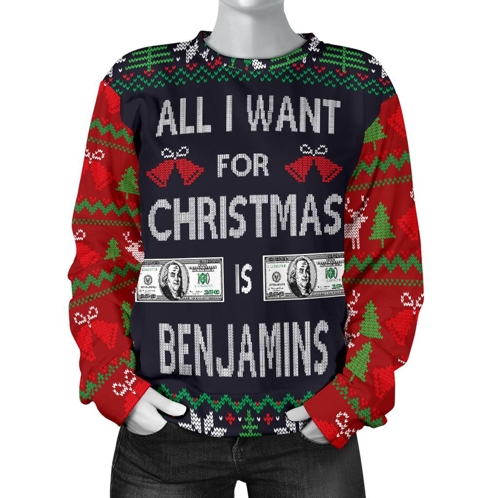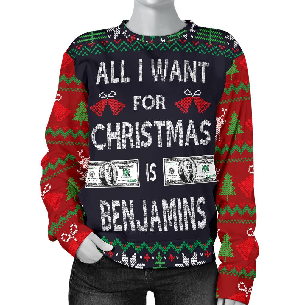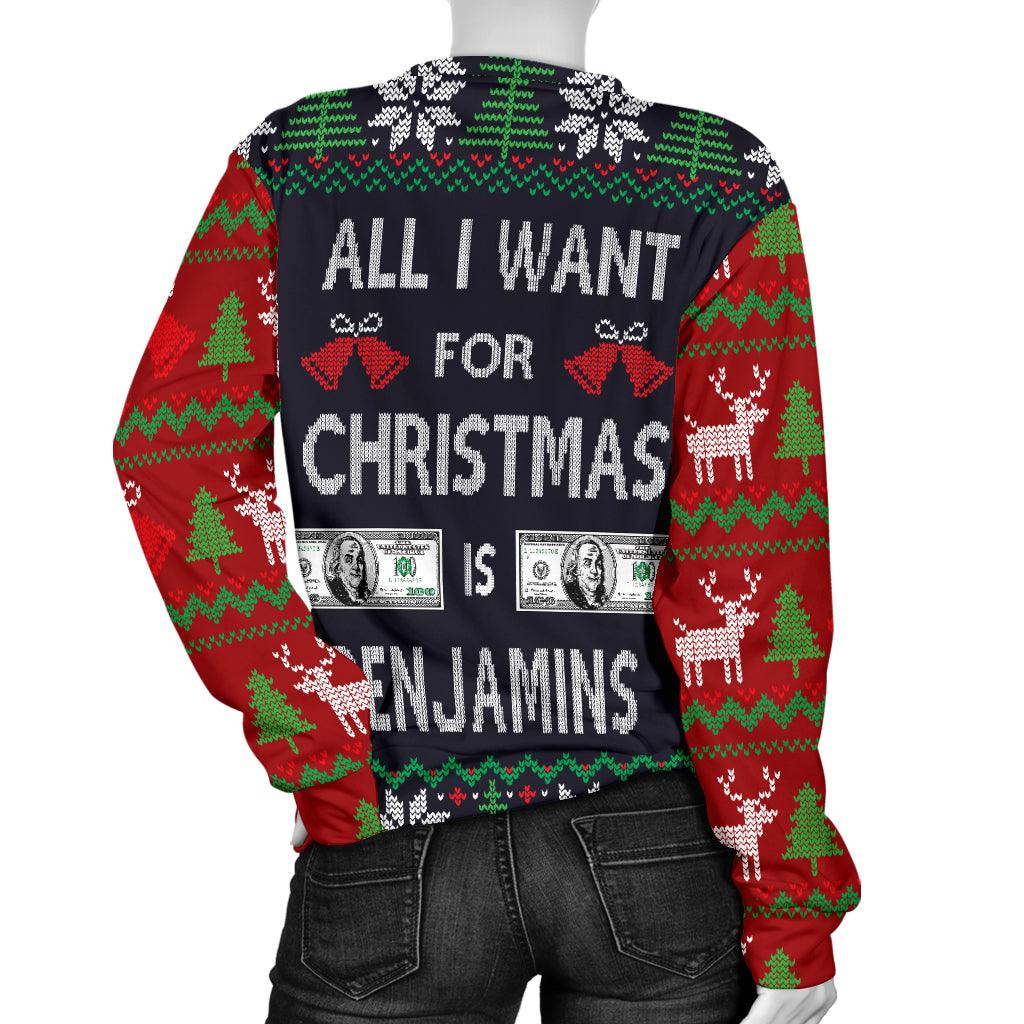Pull de Noël moche All I Want is Benjamins pour femme