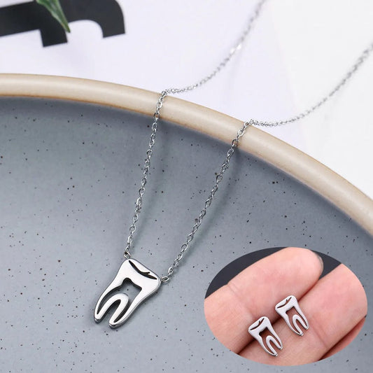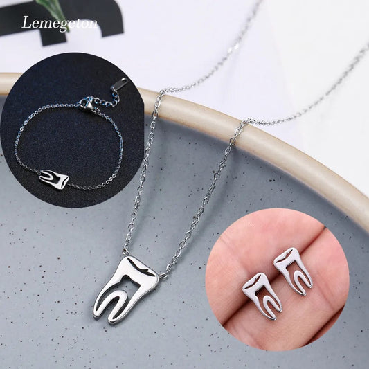 Tandarts Vrouwen Tand Ketting Oorbellen Armband Roestvrij Staal Set Sieraden