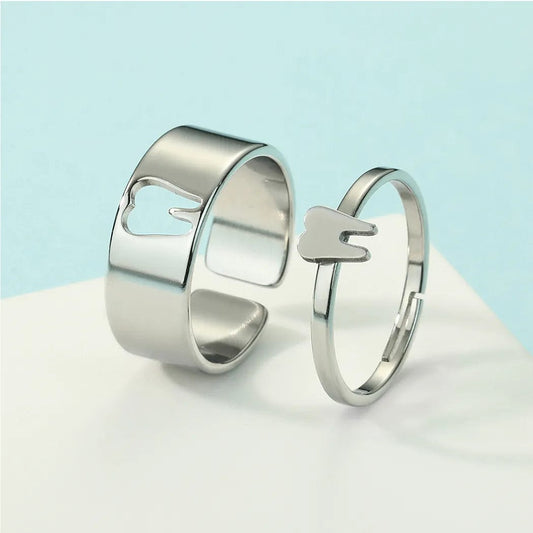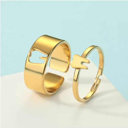 Tandarts Tand 2 stuks Open Ringen voor Koppels Roestvrijstalen Sieraden