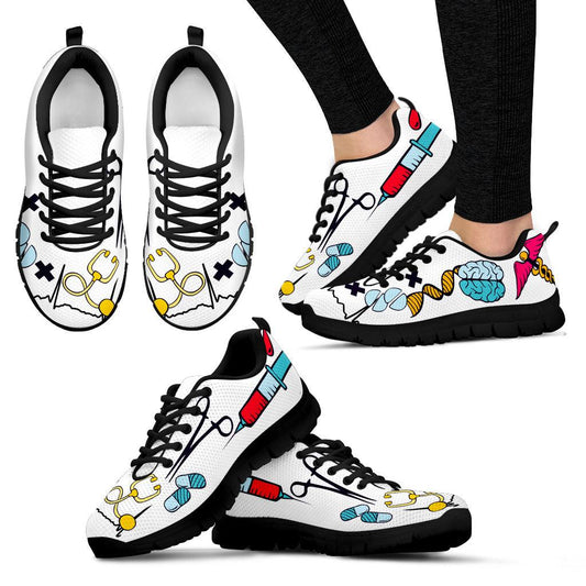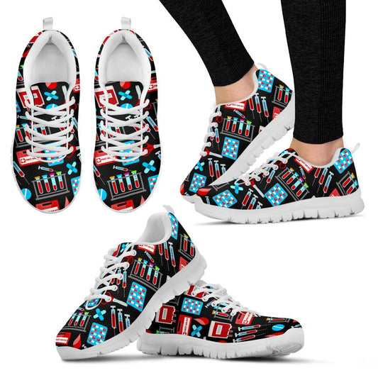 Phlebotomist Women Tubes Sneakers black Sole Gift for Women Sneakers for Registered Nurse Gift Shoes Gift for Nursing Student Mom Shoes Medical icons Shoes Gift for Nurse graduate, gift for nurse practitioner hospital doctor shoe gift