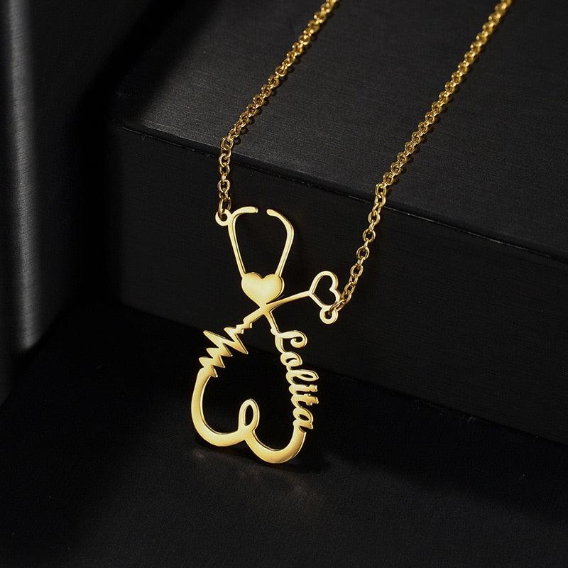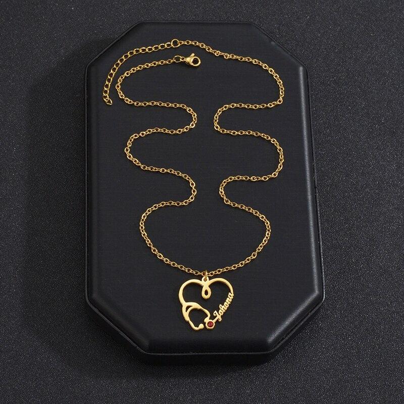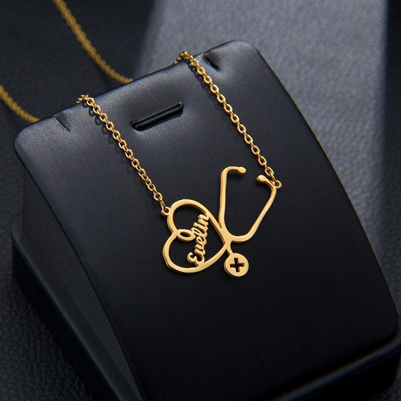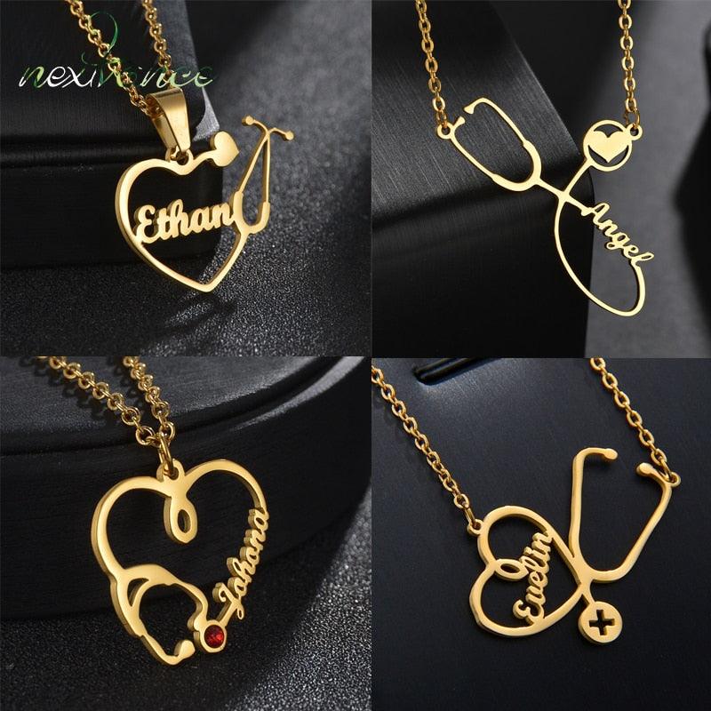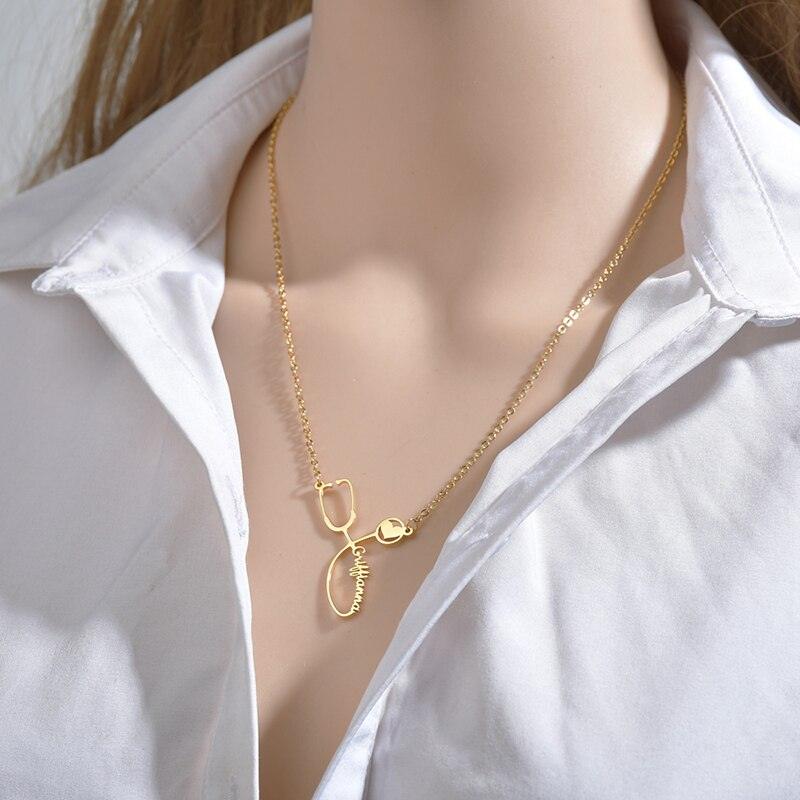Aangepaste naam stethoscoop ketting roestvrij staal hanger gepersonaliseerde stethoscoop strass kettingen ketting voor vrouwen sieraden cadeau