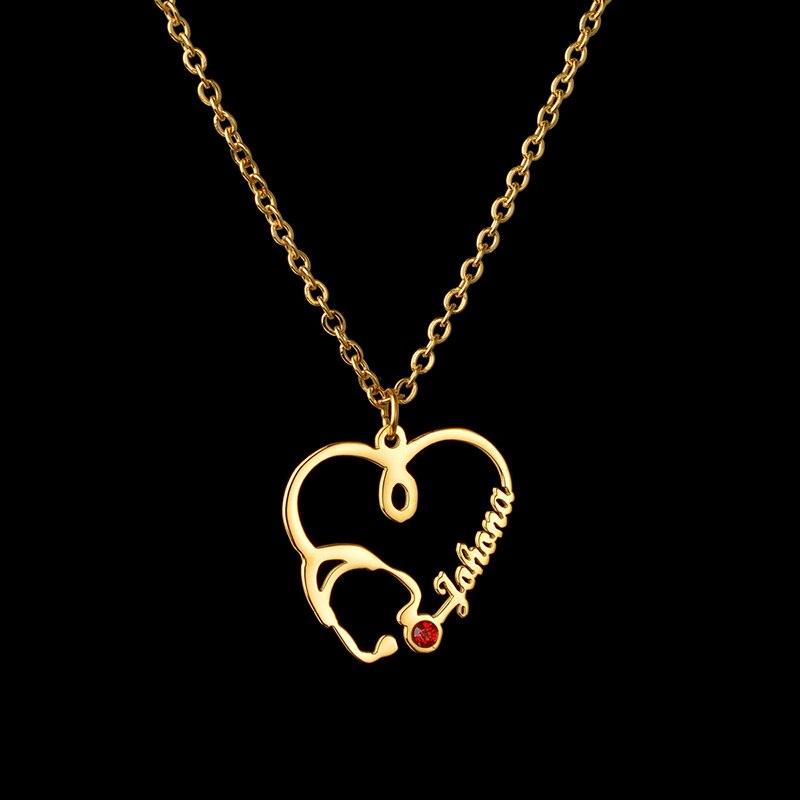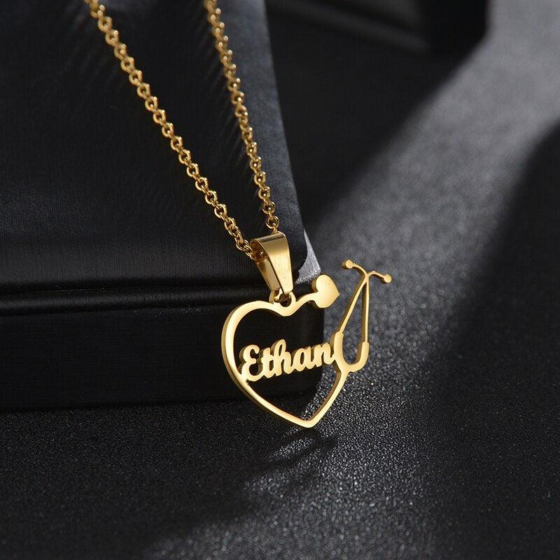 Verwen een geliefde met een gepersonaliseerde Custom Name Stethoscope Necklace, gemaakt van roestvrij staal en versierd met glinsterende strass-kettingen. Perfect voor elke gelegenheid, van een jubileum tot een dagelijkse outfit, deze hangerketting zal zeker een statement maken. Kies uit een selectie van zilver- en goudkleuren en schakelkettingtypes en profiteer van gratis verzending bij uw aankoop. Een onvergetelijk cadeau voor een vrouw, vriend, moeder of vriendin, dit prachtige accessoire is een ideale herinnering aan een bericht.
