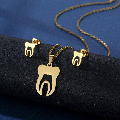 This luxurious Doctor/Nurse Fashion Dental Tooth Pendant Necklace Earring Jewelry Set, crafted from gleaming stainless steel, is the perfect gift for women dentists, and an elegant addition to any outfit for special occasions such as Valentine's Day, engagements, and Christmas. With one necklace and one set of earrings in multiple plated colors - gold, silver, and more - it makes for a sublime bridesmaid gift and is sure to turn heads at parties. Invest in sophistication and style with this exquisite Jewelry Set.